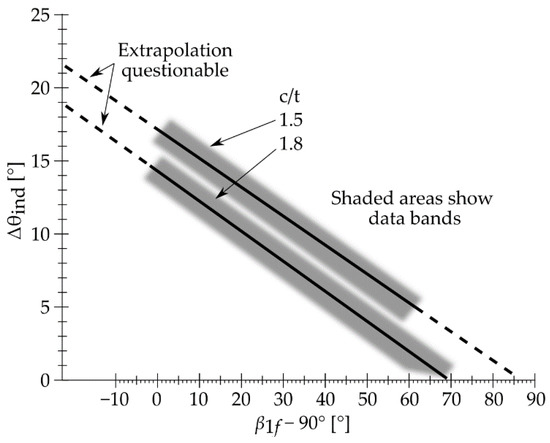 In 1956, Dunavant and Erwin (D&E) [10] presented a correlation relation to estimate the induced incidence as a function of the inlet flow angle and t/c (see Figure 3). A reasonable correlation of plotted data is given by Equation (1) [11].