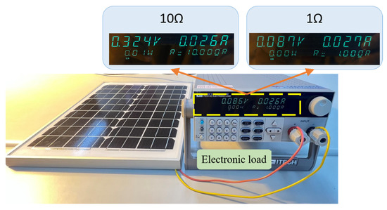 As the electrical equipment runs for a long time or the ambient temperature changes, the type of material or the installed structure may loosen the screws or pressure connection terminals of a power circuit, leading to safety problems. According to [24], the primary cause of electrical equipment aging or failure is the loosening of welding adhesive or grid-line interface breakage. This study added an electronic load to the PV module, and additional loads of 2 Ω and 10 Ω were applied to study the poor connection. The resistance was divided into ten equal parts and was adjusted from 1 Ω to 10 Ω to construct the aging fault type, as shown in Figure 4.