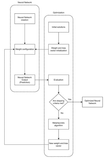 The training of an ANN using metaheuristic algorithms is schematically depicted in Figure 2.