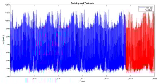 Although several methods of buildings’ load forecasting have been reported in the literature over the last decade [15], only a small number of them refer to hospitals and healthcare facilities. The authors of [28] analyzed different machine learning techniques to predict the daily consumption of a hospital in Spain, achieving an average daily error of 3.8%. The authors of [2] analyzed the dynamics of short- and middle-term predictions by implementing unsupervised, supervised, and ensemble methods, and the proposed models are evaluated by means of a year’s dataset with satisfactory results for the one of the two examined healthcare buildings. The building’s results “revealed an abrupt change in the average prediction error, which helped the authors to identify changes in the energy consumption patterns implemented by the managers of the building under study” [3], using a multi-layer perceptron ANN based on a backpropagation algorithm for forecasting day ahead load consumption of a large hospital, with satisfactory results (MAPE close to 7%), using as inputs the previous day consumption, the previous week consumption, the mean consumption of the previous day, the weekday, a workday/holiday indicator, the timestamp, and the temperature [4], compared the precision of eight machine learning models trained with daily and weekly datasets from a general hospital in Shanghai. The results indicated that for daily load prediction, RF, XGBoost, and SVR are the most accurate and single learning models, with a MAPE on the test dataset of 9.64%, 9.81%, and 10.67%, respectively.