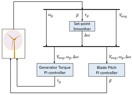 The values of the parameters of the controllers shown in Figure 6 and Figure 7 are summarized in this appendix. Table A1, Table A2 and Table A3 provide the parameter values of ROSCO, SLC, and GAC, respectively.