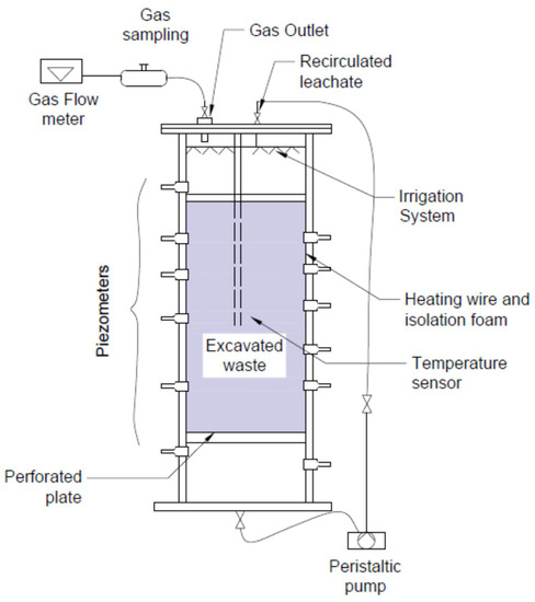 - Francois, V.; Feuillade, G.; Matejka, G.; Lagier, T.; Skhiri, N. Leachate recirculation effects on waste degradation: Study on columns. Waste Manag. 2007, 27, 1259–1272. [Google Scholar] [CrossRef]