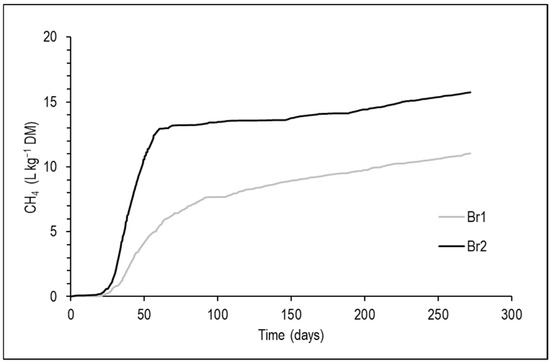 | BMP (mL CH4 g−1 DM) | 17.5 (1.4) | 2.4 (0.4) | ** | 1.0 (0.6) | ** |