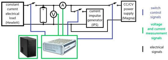 As electricity generation from renewable energy sources has increased, so has the use of energy storage systems. Specific energy, specific power, lifetime, and reliability are among the most important criteria considered when selecting a storage system. There are various electrical energy storage systems, among which the systems of lithium-ion batteries stand out due to their high energy density and acceptable lifetime []. The safe, reliable, and efficient operation of batteries requires a battery management system (BMS) that monitors, diagnoses, and keeps the battery in operation. The main parameters monitored and diagnosed by the BMS are state of charge (SoC), state of health (SoH), and battery temperature.