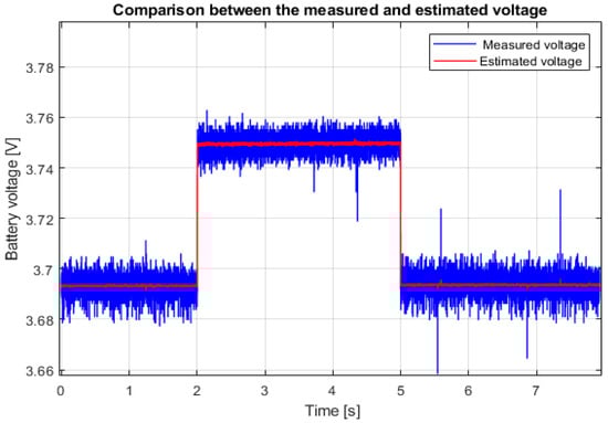 Figure 7 shows the measured voltage response to the current pulse and the Simulink model voltage with estimated parameters for the reference point SoC = 50%. The difference between the signals is caused by noise. When this learning process is completed for all reference points, i.e., SoCs, the vector of transfer function coefficients xR is stored in the reference table with the corresponding SoC. This completes the learning phase. The matrix of learned values for the battery SAMSUNG ICR 18650–26J M is shown in Table 2.