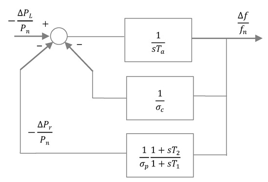 The frequency deviation can be derived from the power deviation through the transfer function, , as follows (Figure 1):