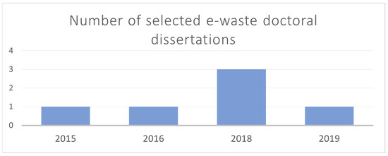 In the last seven years, six doctoral dissertations on the e-waste subject were published and presented in the ProQuest database index. The number of studies per year is presented in Figure 3.