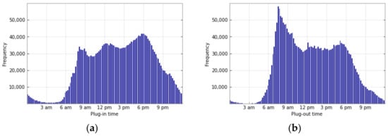The following subchapter presents and discusses the evaluation of the data and the 2.6 million charging processes. Figure 1 shows the distribution of plug-in and plug-out times within a day. It is visible that a larger share of BEVs were connected to the grid in the afternoon and evening hours and the majority of BEVs were unplugged in the morning. It is also noticeable that the frequency of plug-out times was higher than the frequency of plug-in times.