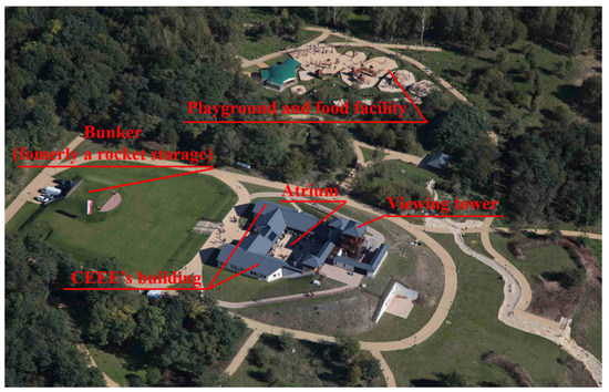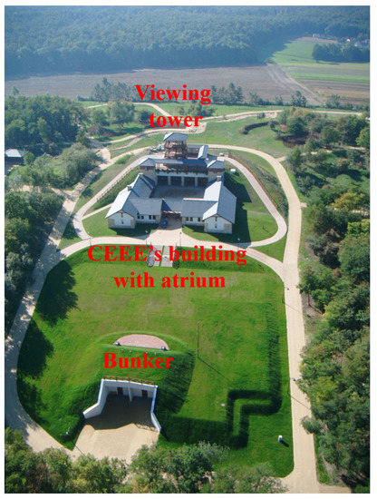 The building of the Center for Ecological and Environmental Education (CEEE) of the Silesian Botanical Garden in Mikołów was created as a result of the adaptation and extension of abandoned military facilities. The new building has been insulated with polystyrene and covered with façade cladding in accordance with the requirements of the Polish Construction Law (Journal of Laws No. 191, item 1373) [78] and the Directive of the European Parliament and the Council of Europe of 16 December 2002 on the energy quality of buildings [79]. A detailed description was presented in a previous publication by Jastrzębska [80].