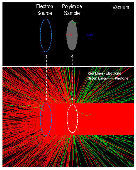 According to Section 2.3, the simulation model of PI under high-energy electron radiation is shown in Figure 7.