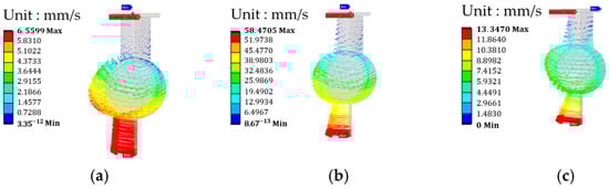 Vibration response velocity: (a) Model A, (b) Model B, (c) Model C.