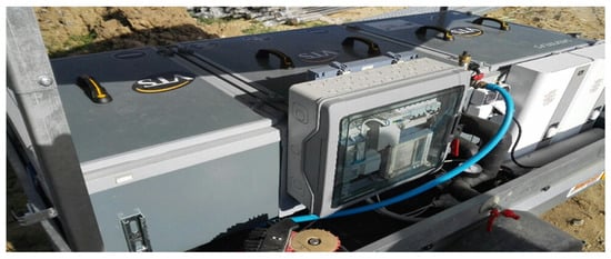 The results for the summer will be confirmed with direct measurements of the capacity using the PC FCH HVAC 1700 air handling unit, presented in Figure 3, where the unit with a full heating load collected actual energy from groundwater at a specific time at the studied location. The air handling unit is powered by a 20 kW electric heater to ensure maximum outdoor conditions, which allows for obtaining a temperature of +35 °C for the incoming air, which is the maximum temperature for Polish climate conditions in the summer.