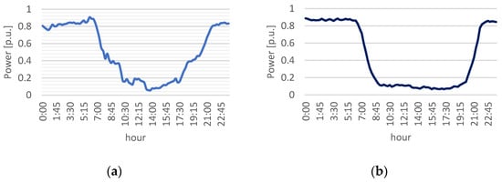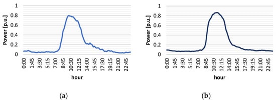 Figure 2 represent the actual consumption profiles that the company considers for industrial and commercial customers, respectively. These profiles were obtained by modeling some data that the company previously acquired from customers. It highlights the fact that, considering the entire year, there is only one characteristic profile for each client, unlike what is presented in this methodology, which presents more than one characteristic profile for different typical days of the year.