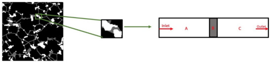 Conventionally, the flow in porous media is described by the Darcy law, which is expressed mathematically as: [17]. Where is the fluid flux per unit of the medium with viscosity , the permeability of the porous medium , and a pressure gradient across the medium. Even though the Darcy law is generally accepted and has been validated by numerous experiments, other studies have shown how fluid flow in porous media could deviate from the Darcy law [18,19,20,21,22,23,24,25,26,27].