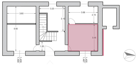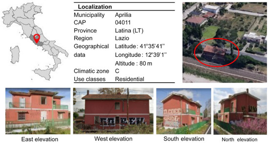 The methodology approach described has been applied to an existing Roadman’s House building (“Casa Cantoniera”) owned by the Lazio region and located along the Via Nettunense km 26 + 600, in the Campo di Carne district (Figure 2 and Figure 3). It is a two-story building consisting of eight typologies of single glass windows with wooden frames. The building is characterised by tuff load-bearing masonry.