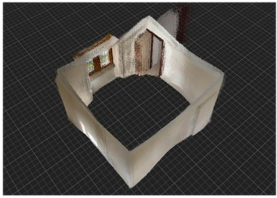 The latter was carried out through active sensor-based techniques (range-based methods), specifically through LiDAR, light detection and ranging, a laser-scanning technology. Using LiDAR, it was possible to obtain a point cloud that after a digital process faithfully reconstructed the geographic information of all reflective building elements (Figure 4). The generated point cloud can be further post processed to create a building information model (BIM) [57]. The integration between BIM and LiDAR is a very interesting opportunity for the construction industry because it helps to process, in real time, useful information for the collection, processing and management of information related to buildings.
