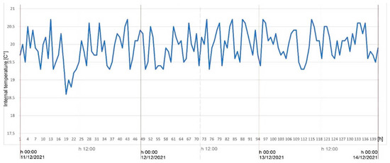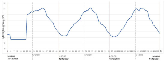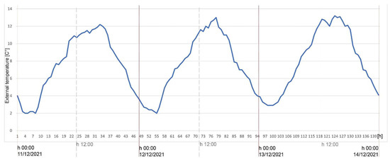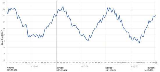 The calculation of post operam performance was carried out, following the application of the CI.01 insulation solution on the north wall and simulated in the real location, in climate zone C, for the period corresponding to in situ monitoring, i.e., from 11 December 2021 to 13 December 2021 and from 18 December 2021 to 20 December 2021.