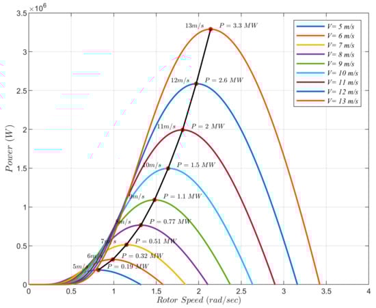 In several studies, different methods have been proposed for wind turbine power extraction []. When the WT operate on MPPT, expressions are given by Equation (17):