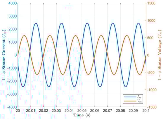 where , are the flux vectors for stator and rotor, respectively. , are the fluxes along the dq axis stator. , are the fluxes along with the dq axis rotor. , : stator and rotor phase leakage inductances, respectively, Lm: stator–rotor mutual inductance, and : is the number of pole pairs of the generator.