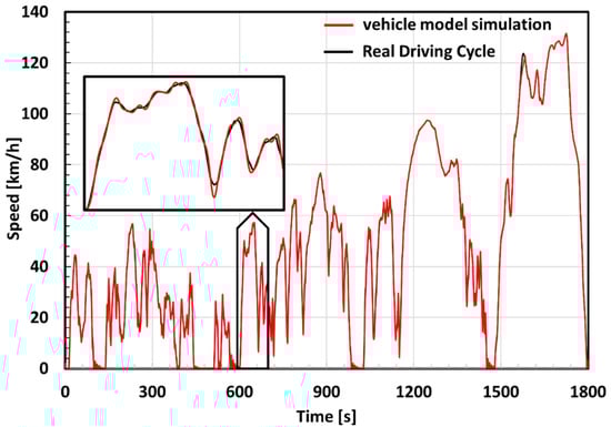 Comparison between WLTP CLASS 3B driving cycle and vehicle model simulation.