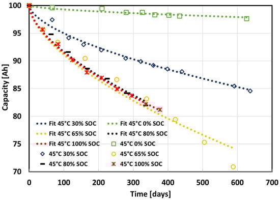 - Real data retrieved from a literature article [51] were analyzed and a mathematical curve dependent on temperature and SOC were extracted to estimate the calendar ageing.