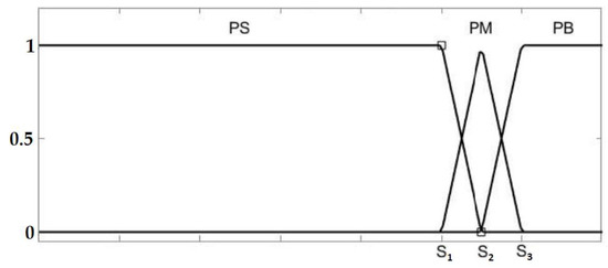 Here, is power error and is time. The GA optimization is utilized to compute optimum membership function values for FLC. The optimized variables can be seen in Figure 6, Figure 7, Figure 8 and Figure 9. These variables are , , , and for membership functions of power error, , , , and for membership functions of change in power error, , and for membership functions of generator speed and the scaling factor . Table 2 presents optimization results for these parameters and allowed intervals. These intervals are found with a trial-and-error method in order to find approximate regions in which the controller performs adequately.