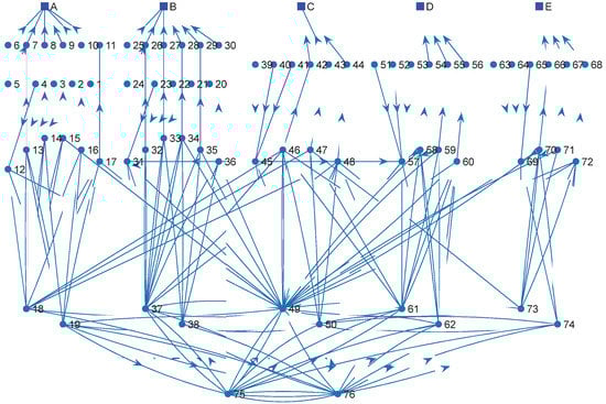 In Equation (1), represents the set of all vertices in TVPHAG, where represents the set of vertices of equipment, and represents the set of vertices of consequence. represents equipment, with a total of . represents the consequences of cascading failures, with a total of .