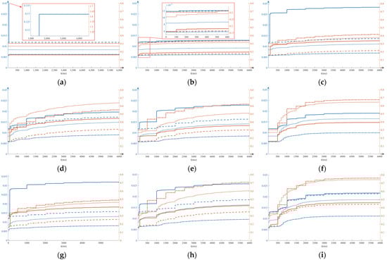 Dynamic diagram of failure probability of multi-type attack. (a) CB (bay A) is attacked, (b) transformer (bay A) is attacked, (c) CB-IED (bay A) is attacked, (d) MU (bay A) is attacked, (e) MD (bay A) is attacked, (f) NCCS is attacked, (g) transformer (bay A) and CB-IED (bay A) are attacked, (h) transformer (bay A) and MD (bay A) are attacked, (i) transformer (bay A) and NCCS are attacked.