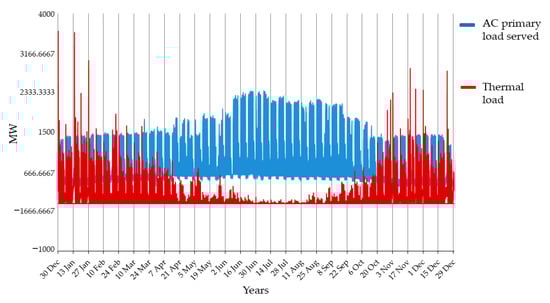 Figure 7 shows the annual electricity and thermal load demand of the selected communities. Data indicate that, as expected, during the winter season, the thermal load demand increases, while in summer season, the electric load demand results higher.