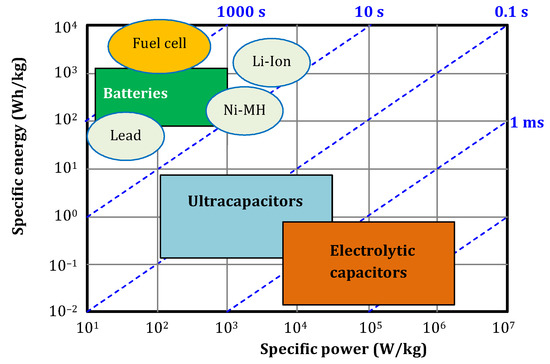 A battery with a low energy capacity of 1–3 kWh [7,8] would be used as a support device to complement the operation of the fuel cells. However, starting the vehicle and moving it in the initial period is completed largely with the use of batteries (since the fuel cell is not able to work independently immediately after activation).