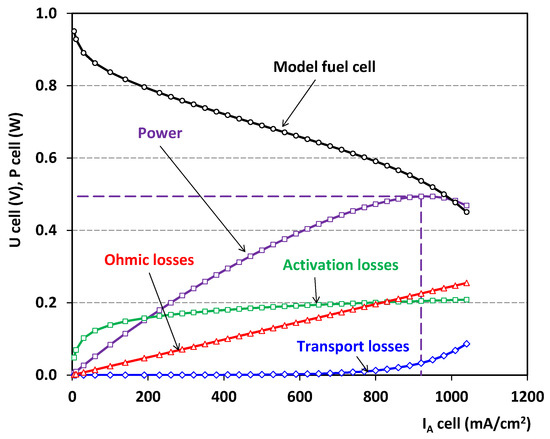 The assessment of fuel cell losses was carried out using the analyses presented in Figure 18 and the data contained in Section 3.