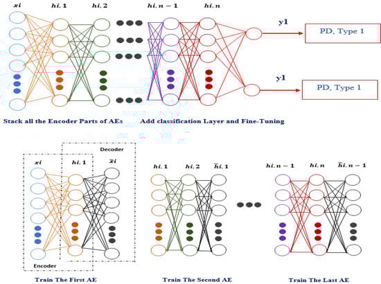 74. Ganjun, W.; Fan, Y.; Xiaosheng, P.; Yijiang, W.; Taiwei, L.; Zibo, L. Partial discharge pattern recognition of high voltage cables based on the stacked denoising autoencoder method. In Proceedings of the 2018 International Conference on Power System Tech, Guangzhou, China, 6–8 November 2018. [Google Scholar]
