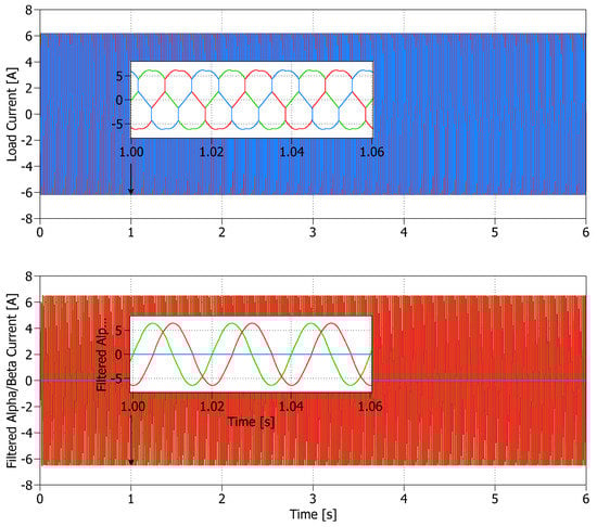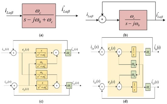 The value of ωc influences the dynamic response and the attenuation of the HFNS components. A higher value of ωc leads to faster dynamic response, but poor HFNS component attenuation. Therefore, to obtain a good dynamic response, and to eliminate the HFNS component, the α-axis and β-axis HFNS components are also extracted in a similar way as the HFPS components. The obtained HFNS and HFPS components are subtracted from the distorted α-axis and β-axis load currents. The ωc is chosen to be equal to 0.707 ωn to achieve a good dynamic response. Therefore, the extracted current components of HFPS and HFNS can lead to these final equations: