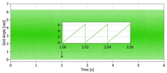 The proposed improved CVF method is not only used to synchronize PV converters, but contrary to PLL-based methods, it can also estimate the fundamental frequency quadrature current, which only locks the PV inverter to the network. In addition, the performance of PLL-based algorithms will significantly change with the grid voltage and frequency deviation. The fundamental frequency quadrature current components are no longer orthogonal, thus leading to the inaccurate estimation of AP component of load current. The response of the proposed control algorithm under the change in the grid angle is shown in Figure 6.