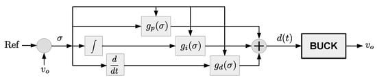 The PID is a feedback-based control strategy that uses the error between the plant output and a given set-point to perform the control action based on three gains: proportional (), integrative (), and derivative () of the error. There is a vast bibliography about PID control systems, and there are many available solving methods for those gains.