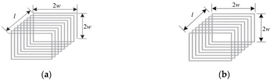 In terms of coil loss calculation, the key is to accurately calculate the internal resistance value of the litz coil when working. The traditional methods include the Biot–Savart law method [7], the improved Dowell method [8], and the Kelvin function method [9]. In addition, ref. [10] analyzed the difference between the skin effect and the proximity effect of the twisted and binding wires. Then, the equivalent internal resistance of the two coils is calculated according to the improved Dowell method. Ref. [11] analyzed the distribution characteristics of the magnetic field on the litz wire under the condition of a high-frequency excitation current and investigated the influence of the twisting degree on the internal resistance of the litz wire. However, the above methods are only applicable to a simple coil structure. The magnetic coupler in the wireless charging system further comprises the magnetic core and aluminum plate. Their influence on the coil’s internal resistance cannot be ignored.