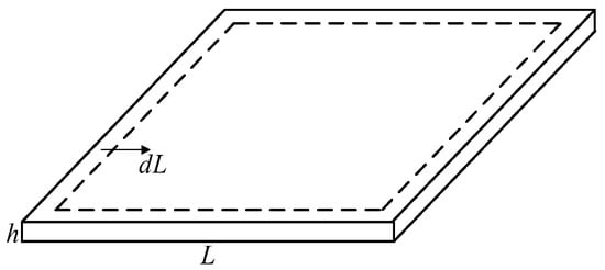 where ρ is the material resistivity (Ω·m), h is the aluminum plate thickness (m), and B is the magnetic induction strength (T). d is the metal body material thickness (m), f is the excitation current frequency (Hz), and ρ is the material density (kg/m3). The upper and lower surfaces of the aluminum plate are square, the side length is l, the thickness is h, and the skin depth is δ. The length of the unit aluminum plate is dL, as shown in Figure 8.
