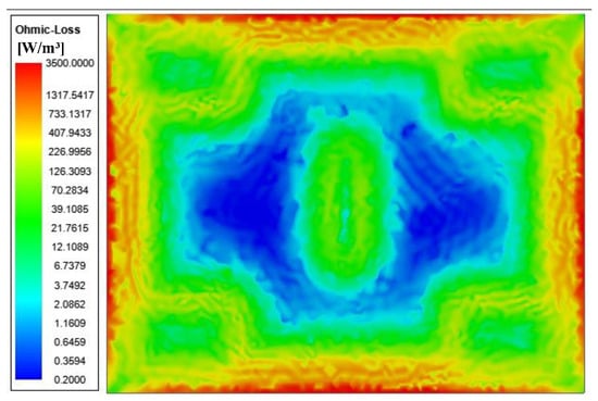 The finite element analysis method can be introduced to calculate the aluminum plate loss. Figure 10 shows that the aluminum plate loss is mainly concentrated at the edge of the aluminum plate and is relatively small in the middle area. The mesh division is shown in Figure 11. It shows that the aluminum plate has a large number of units at the edge, which corresponds to the loss distribution of the aluminum plate. After division, the eddy current loss of each aluminum plate division block is calculated and integrated to obtain the complete aluminum plate loss.