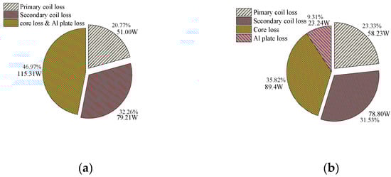 Under a transmission distance of 140 mm, the loss simulation and experimental results of each part of the magnetic coupler are shown in Table 5. The loss proportion is shown in Figure 20.