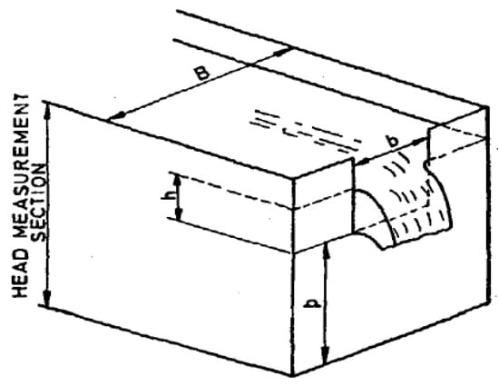 The discharge measurement in this experiment was done using a rectangular notch, shown in Figure 3, fitted in the measuring tank. The discharge formula found by the Indian Standard (IS: 9108-1979) was used and is discussed below.