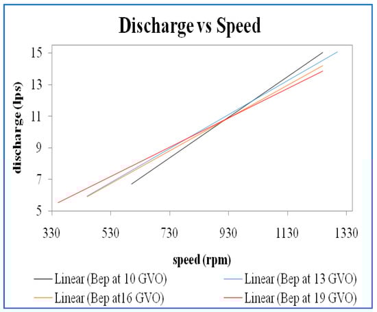 Figure 24. Discharge vs. speed for best efficiency point at 10 mm GVO.