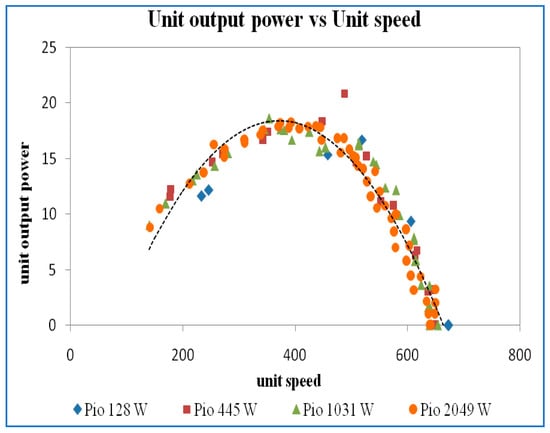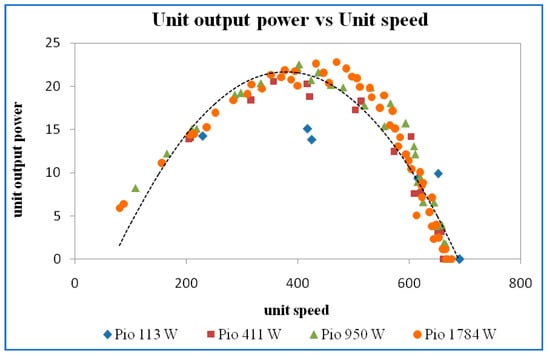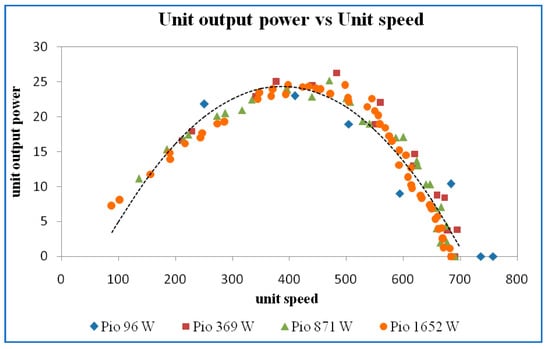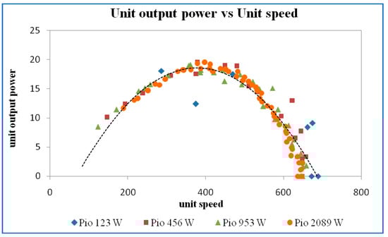 Figure 32. Unit output power vs. unit speed at a guide vane opening of 16 mm.