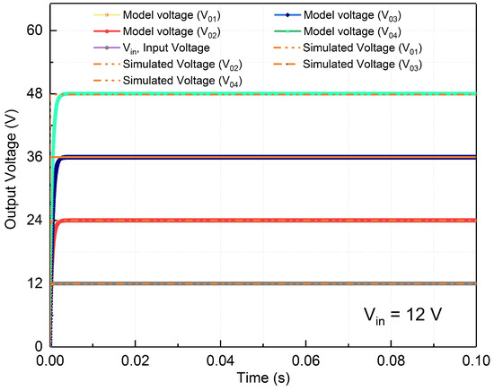 Model voltage and simulated voltage of SIMO DC-DC converter.