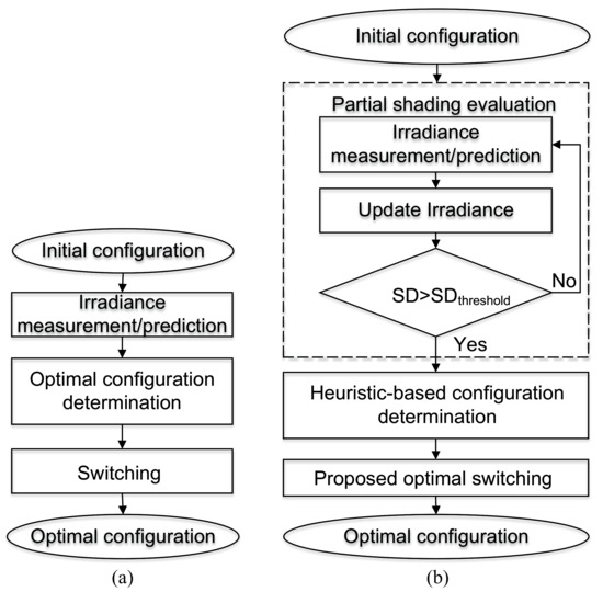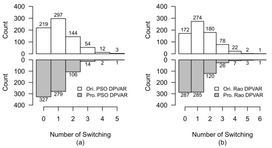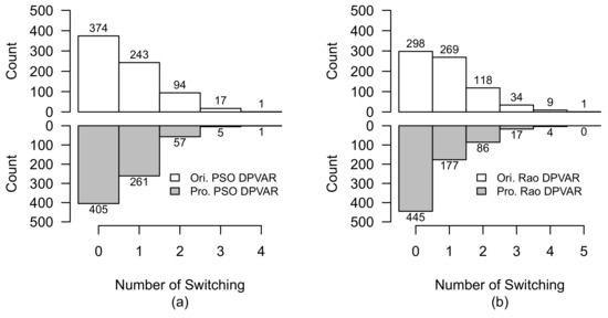 Comparison of switching operation of original-reconfigured and proposed-reconfigured PV arrays under Case 2 with lagged time. (a) PSO-reconfigured PV array. (b) Rao-reconfigured PV array.