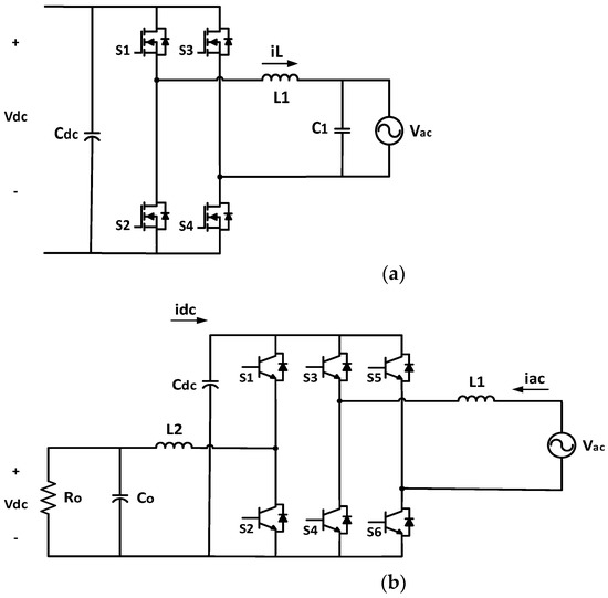 Bidirectional inverter topologies of (a) a 2L full bridge with LCL filter, (b) a 2L parallel full bridge [56].