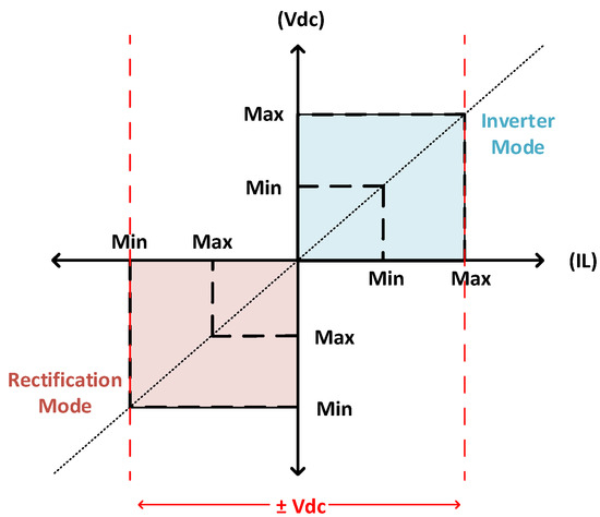 In addition to maintaining stable DC and AC voltage levels and grid synchronization [21,22], the DC-side interaction with the AC grid must be decoupled and isolated in the case of a fault or potential transient which can affect the dynamic operation of the system [23]. Furthermore, the phase shift during the transition period between inversion and rectification modes should not affect the DC system’s reliability. Considering that certain bidirectional inverter types have two stages of power conversion, the control structure may become more complex if the transition between modes is performed effectively to achieve high performance levels. The control design of the DC-bus interface with renewable energy is discussed in more detail in Section 5.