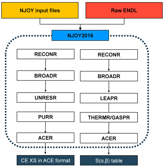 - MacFarlane, R.E.; Muir, D.W.; Boicourt, R.M.; Kahler, A.C., III; Conlin, J.L. The NJOY Nuclear Data Processing System Version 2016; LA-UR-17-20093; Los Alamos National Lab.: Los Alamos, NM, USA, 2016.