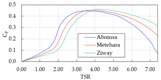 - Based on the conducted study, the maximum coefficient of performance CP,i values of 0.4478, 0.4587, and 0.4627 are obtained at the maximum tip speed ratio λi values of 3.0, 3.5, and 4.0, resulting in rotors sizes (diameters) of 10.74 m, 7.34 m, and 6.34 m for the three sites Abomsa, Metehara, and Ziway, respectively.