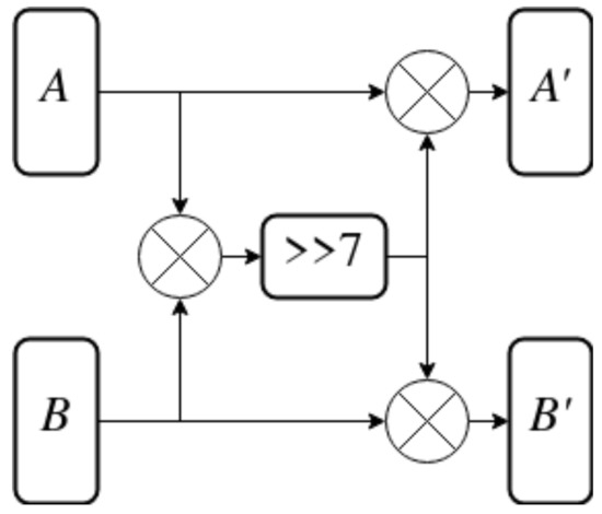 - The upper and lower halves of the result from previous step were XORed together to make a 32-bit number;