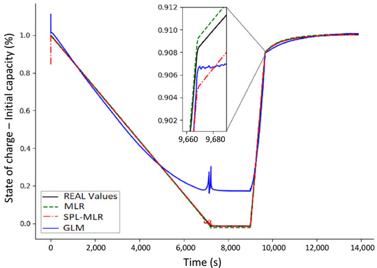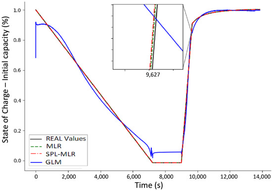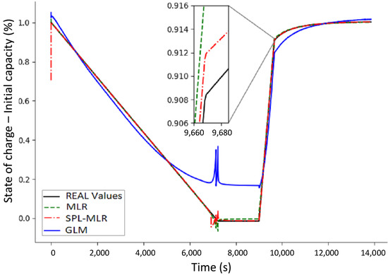 Therefore, the Multiple Linear Regression (MLR) and the Generalized Linear Model (GLM) are used, which allows the implementation of low-order linear models, characterizing the dynamic behavior observed in the battery system. The GLM was chosen because the automobile industry prefers performances based on simplified, easily identifiable models calibrated through practical experiments [60].